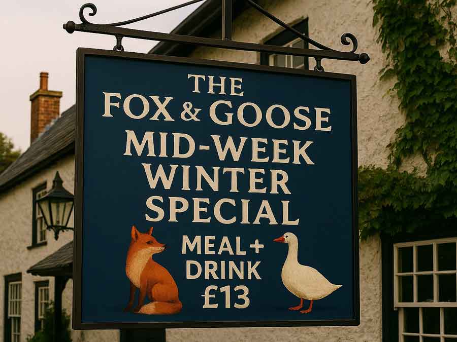 The Fox and Goose is an imposing Victorian building, with a contemporary, stylish interior. We are open and serve food Wednesday, Friday and Saturday evenings and Sunday lunchtimes.
